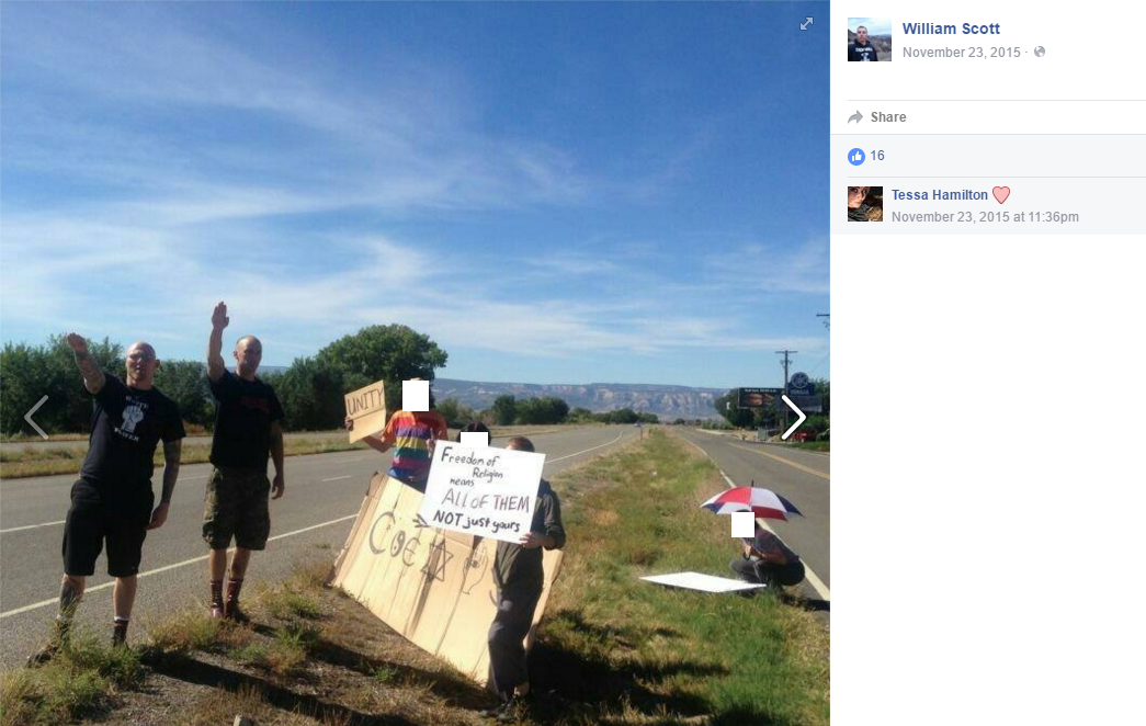 He can also be seen on William’s facebook doing a sieg heil salute in front of some demonstrators advocating for religious tolerance.